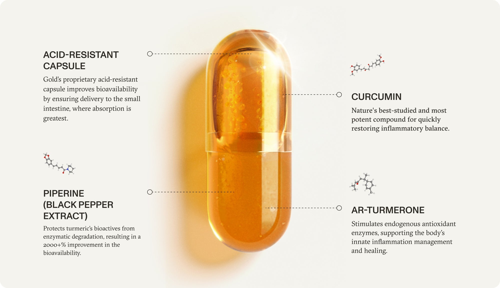 Gold uses a proprietary liposomal nano-encapsulation that protects turmeric’s bioactives from degradation and delivers them directly into gut epithelial cells.